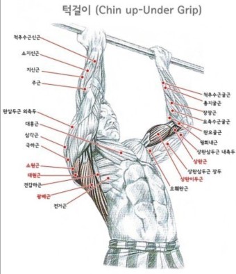 ●주의점: 풀업 동작에서 어깨 관절에 지나친 스트레스가 가해질 수 있으므로, 처음에는 자신의 체중에 맞는 적절한 보조를 통해 연습해야 한다. 팔의 힘에만 의존하지 않고, 등 근육과 코어 근육을 함께 사용해 몸을 끌어올리는 것이 중요하다.