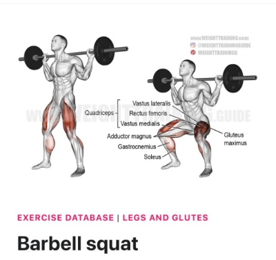 ●주의점: 무릎이 발끝보다 앞으로 나오지 않도록 주의하며, 상체를 너무 앞으로 기울이면 허리에 무리가 갈 수 있다. 바벨을 상체 뒤에 위치시킬 때 균형을 잃지 않도록 무게 중심을 발뒤꿈치에 유지하는 것이 중요하다.