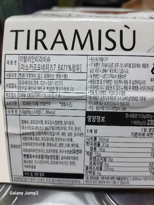 - 특징: 재활용 가능한 유리컵 포장 이 티라미수는 냉동 상태로 수입된 후 해동되어 판매되며, 재냉동은 품질 저하를 일으킬 수 있으니 피해야 합니다. 냉장고에 보관하며 빠르게 드시는 걸 추천드립니다.